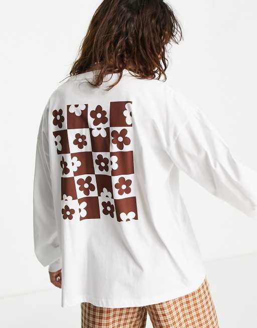 ASOS DESIGN - T-shirt à manches longues avec imprimé floral en damier - Blanc
