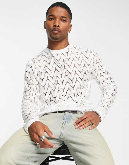 ASOS DESIGN - T-shirt à manches longues en dentelle - Blanc