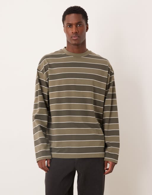 ASOS DESIGN - T-shirt à manches longues oversize en tissu épais rayé - Kaki