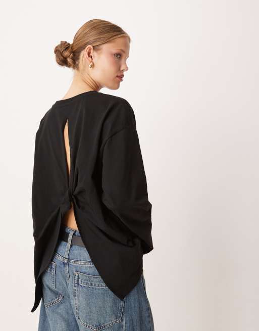 ASOS DESIGN - T-shirt à manches longues torsadé dans le dos - Noir