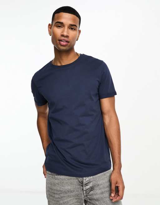 ASOS DESIGN - T-shirt à manches retroussées - Bleu marine