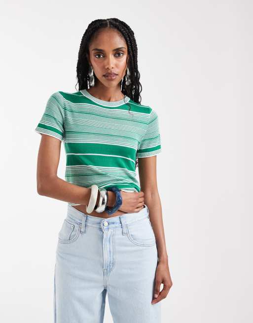 ASOS DESIGN - T-shirt à rayures en maille transparente - Vert