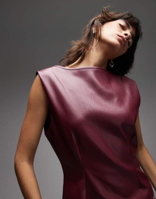 ASOS DESIGN - T-shirt à taille cintrée en PU - Prune