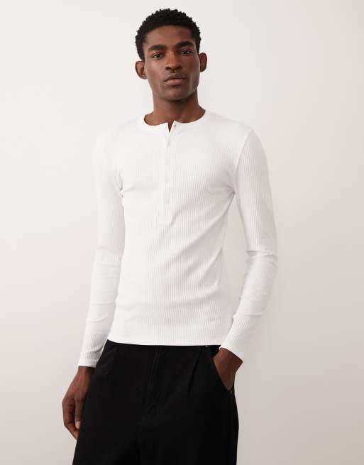 ASOS DESIGN - T-shirt côtelé moulant en tissu épais à manches longues - Blanc