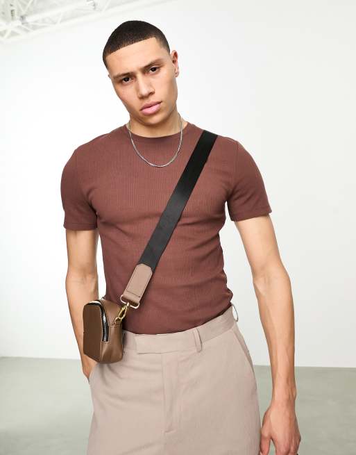 ASOS DESIGN - T-shirt côtelé moulant - Marron