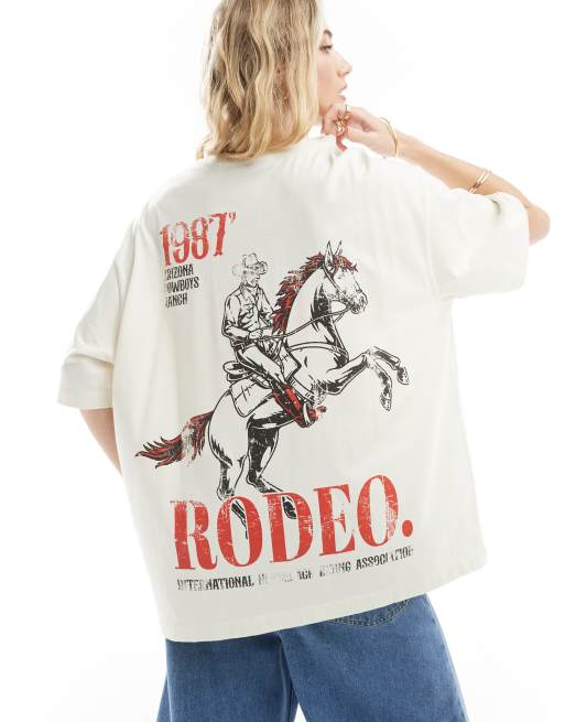 ASOS DESIGN - T-shirt coupe boyfriend avec imprimé Rodeo - Crème