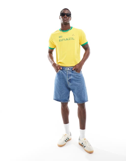 ASOS DESIGN - T-shirt coupe carrée avec bords contrastants et imprimé Brazil sur la poitrine - Jaune