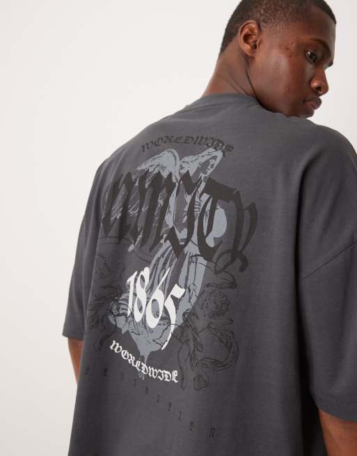 ASOS DESIGN - T-shirt coupe carrée oversize à épaules tombantes avec imprimés grunge - Noir délavé