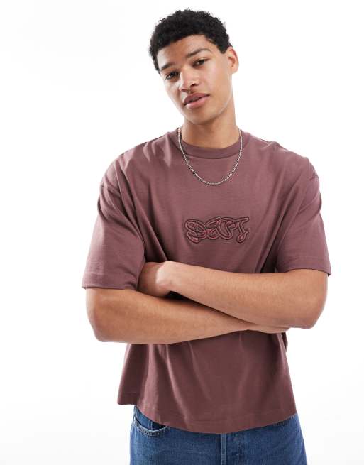 ASOS DESIGN - T-shirt coupe carrée oversize avec imprimé texte - Marron