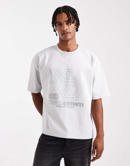 ASOS DESIGN - T-shirt coupe carrée oversize en maille interlock de qualité supérieure à motif streetwear - Gris