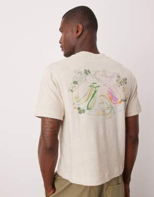 ASOS DESIGN - T-shirt crop top décontracté en lin mélangé avec imprimé nourriture - Crème