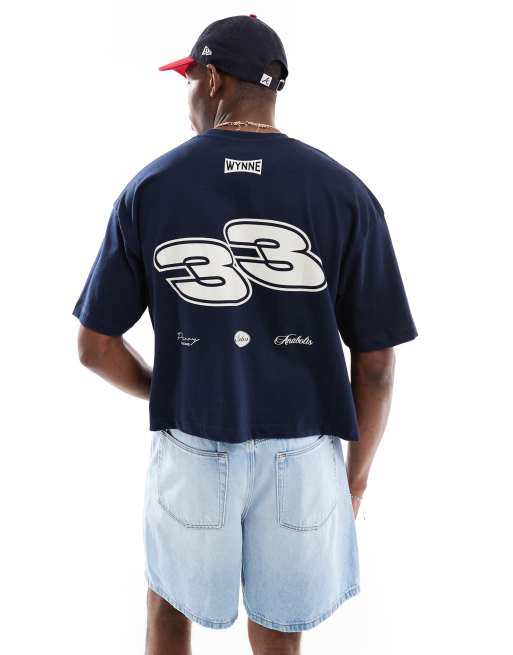ASOS DESIGN - T-shirt crop top oversize à motif Street - Bleu marine