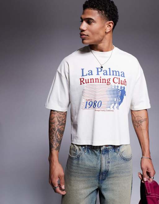 ASOS DESIGN - T-shirt crop top oversize avec imprimé sport à l'avant - Blanc cassé