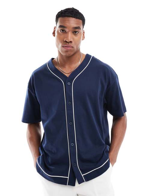 ASOS DESIGN - T-shirt de baseball oversize à boutons et liseré contrastant - Bleu marine