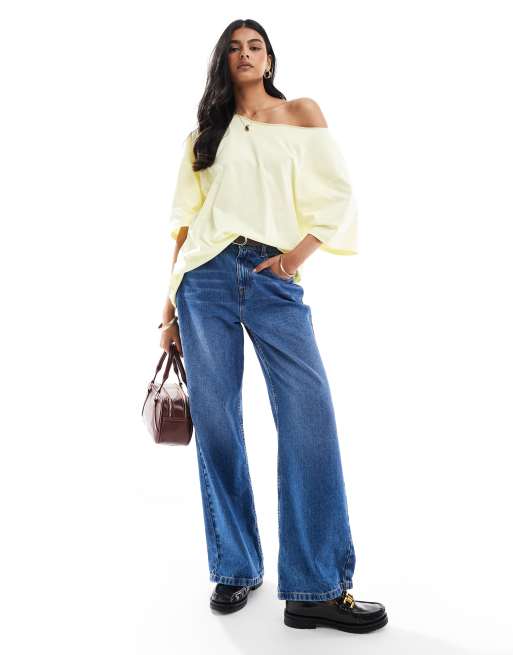 ASOS DESIGN - T-shirt décontracté à épaules dénudées - Jaune citron