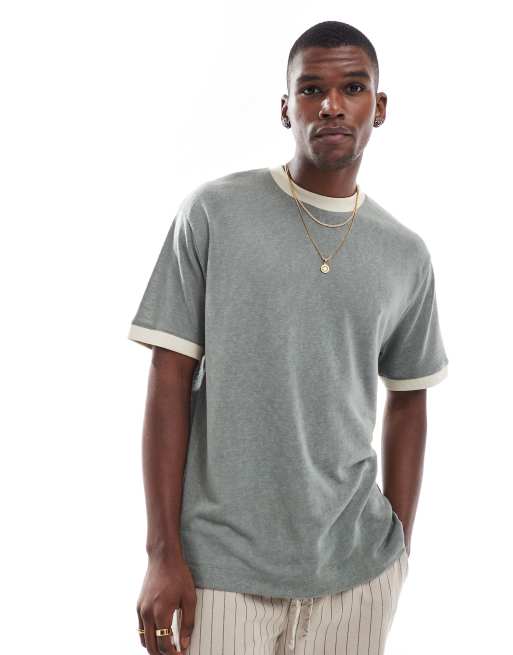 ASOS DESIGN - T-shirt décontracté aspect lin avec coutures contrastantes - Gris
