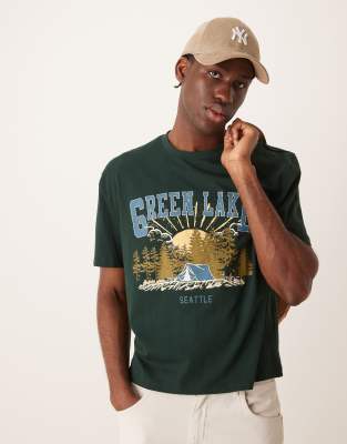 ASOS DESIGN - T-shirt décontracté avec imprimé paysage à l'avant - Vert