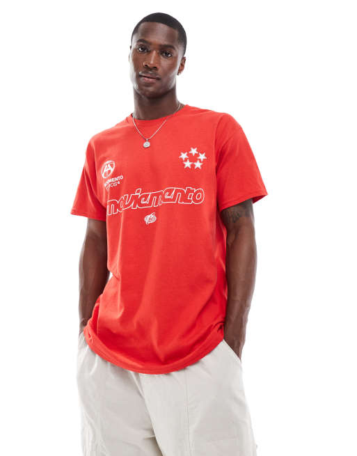 ASOS DESIGN - T-shirt décontracté avec imprimé sports sur l'avant - Rouge
