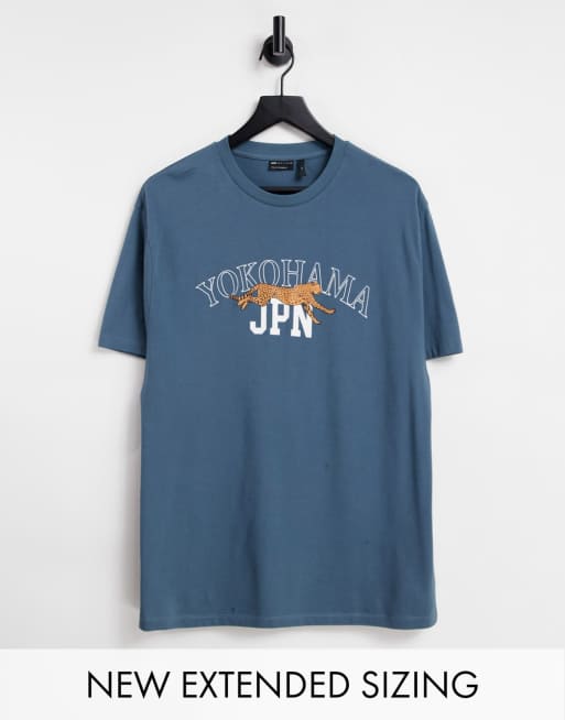 ASOS DESIGN - T-shirt décontracté avec imprimé ville Yokohama - Bleu
