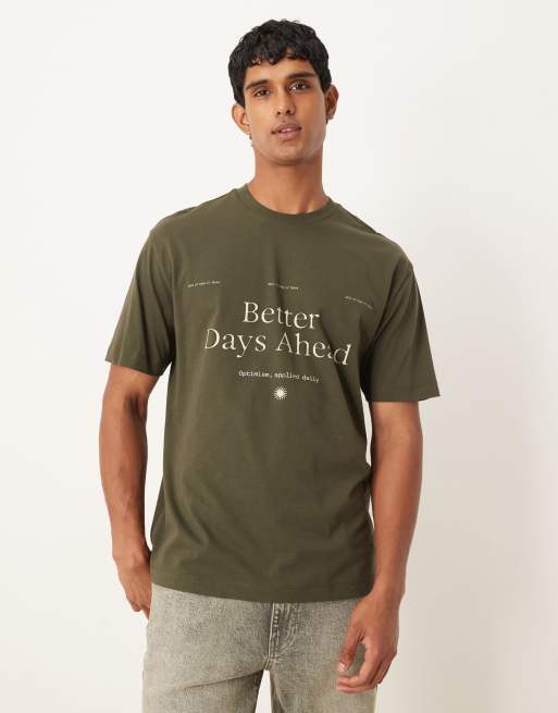 ASOS DESIGN - T-shirt décontracté avec texte imprimé - Vert