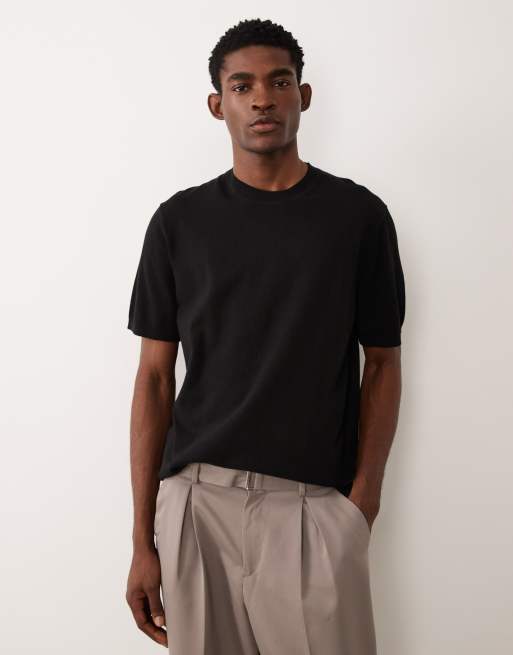 ASOS DESIGN - T-shirt décontracté basique en maille de coton mélangé à col ras de cou - Noir