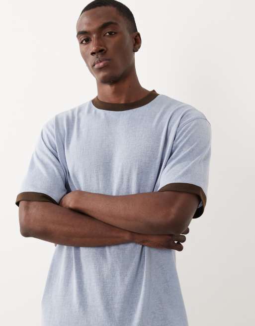 ASOS DESIGN - T-shirt décontracté en aspect lin à bords contrastants - Bleu.