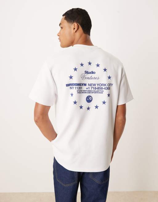 ASOS DESIGN - T-shirt décontracté en maille interlock de qualité supérieure à imprimé ville - Blanc