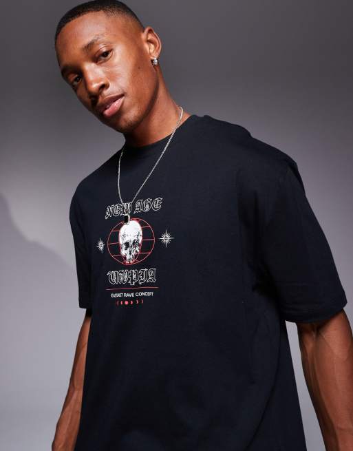 ASOS DESIGN - T-shirt décontracté imprimé tête de mort sur le devant - Noir