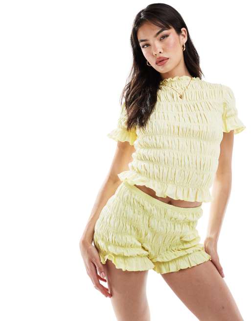 ASOS DESIGN - T-shirt d'ensemble froncé effet rétréci - Citron