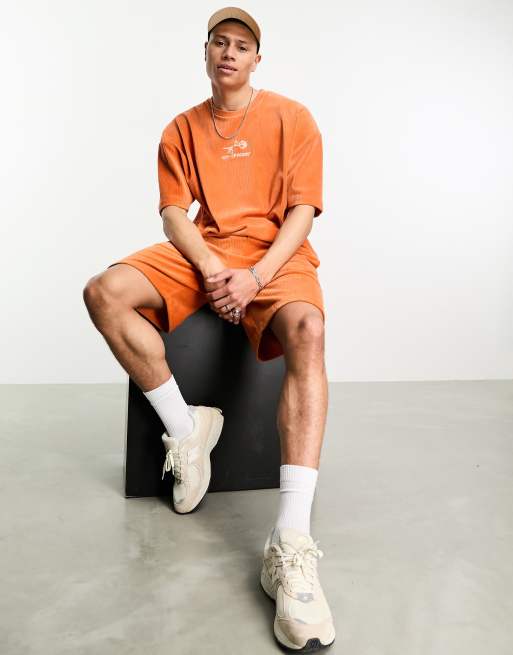 ASOS DESIGN - T-shirt d'ensemble oversize en velours côtelé avec broderie - Orange