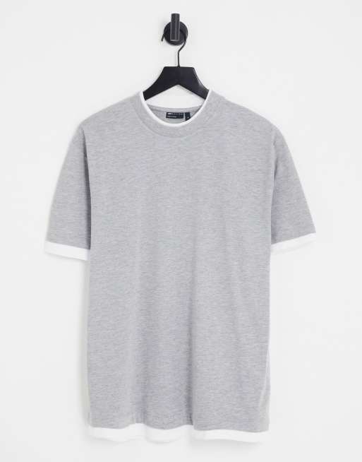 ASOS DESIGN - T-shirt double épaisseur - Gris chiné