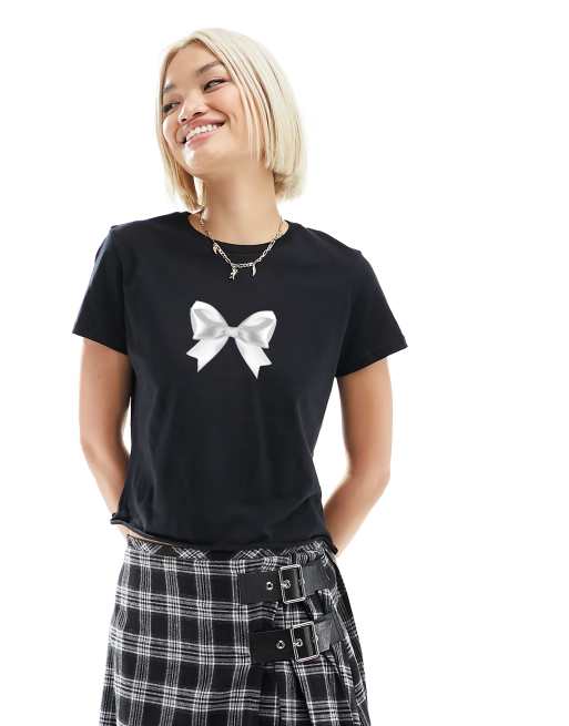 ASOS DESIGN - T-shirt effet rétréci à imprimé nœud - Noir
