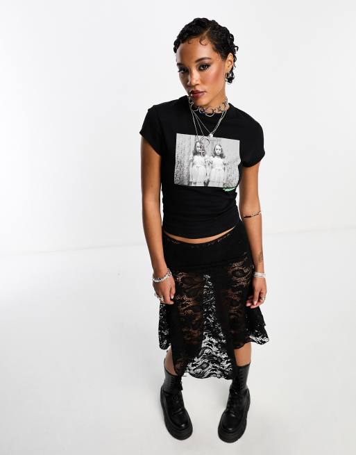 ASOS DESIGN - T-shirt effet rétréci à logo Halloween avec les jumelles de Shining sous licence - Noir