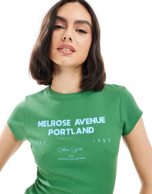 ASOS DESIGN - T-shirt effet rétréci avec imprimé Portland - Vert