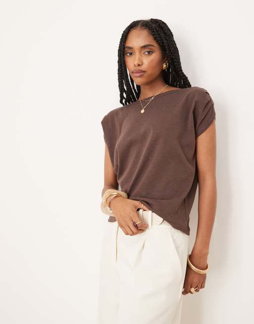 ASOS DESIGN - T-shirt effet rétréci en tissu flammé avec mancherons - Chocolat