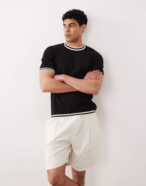 ASOS DESIGN - T-shirt en maille côtelée avec liseré blanc - Noir