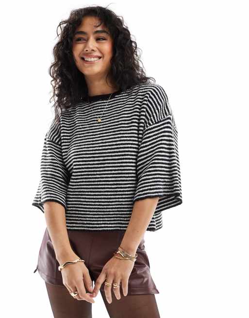 ASOS DESIGN - T-shirt en maille duveteuse - Micro rayures
