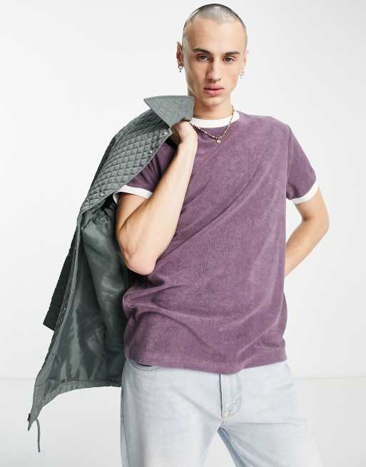 ASOS DESIGN - T-shirt en tissu éponge avec col et bordures des manches contrastantes - Violet