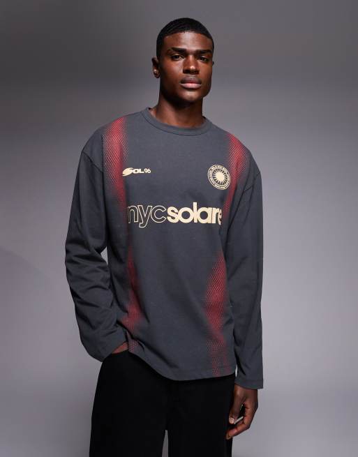 ASOS DESIGN - T-shirt épais oversize à manches longues et motif sportif - Gris délavé