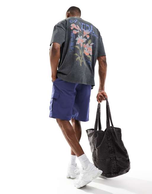 ASOS DESIGN - T-shirt épais oversize avec imprimé fleurs au dos - Gris anthracite délavé