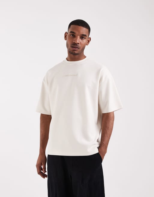 ASOS DESIGN - T-shirt épais oversize avec inscription brodée - Blanc cassé.