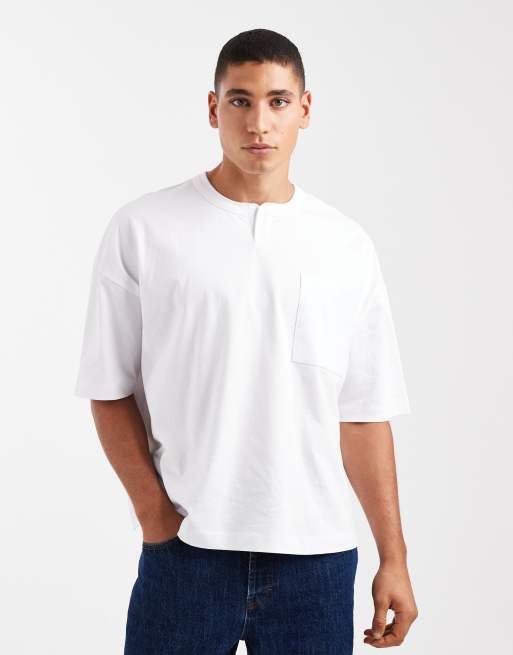 ASOS DESIGN - T-shirt épais oversize coupe carrée à col boutonné - Blanc