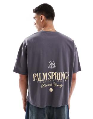 ASOS DESIGN - T-shirt épais oversize coupe carrée à imprimé ville - Bleu marine