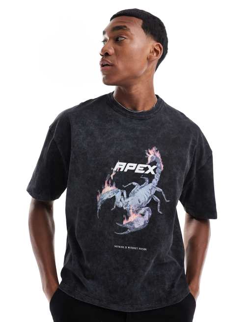 ASOS DESIGN - T-shirt épais oversize coupe carrée avec imprimé - Noir délavé