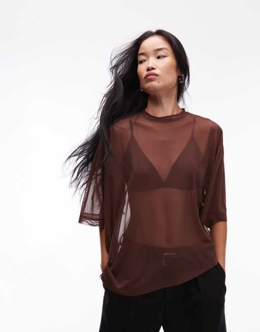 ASOS DESIGN - T-shirt fluide en tulle à coupe carrée - Marron