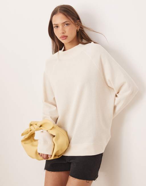 ASOS DESIGN - T-shirt gaufré à manches raglan longues - Lait de coco