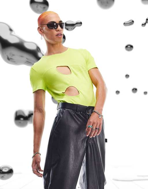 ASOS DESIGN - T-shirt moulant à découpes et coutures - Jaune