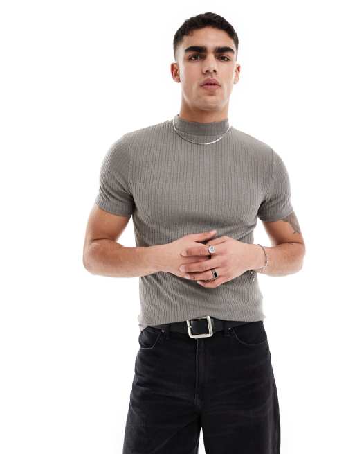 ASOS DESIGN - T-shirt moulant côtelé à col montant - Gris