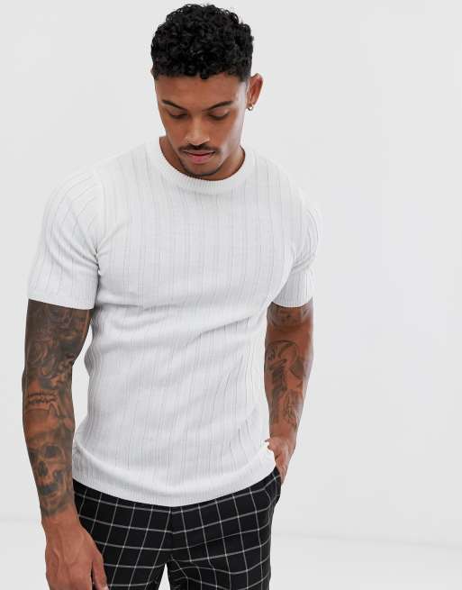 ASOS Design - T-shirt moulant en maille côtelée - Blanc