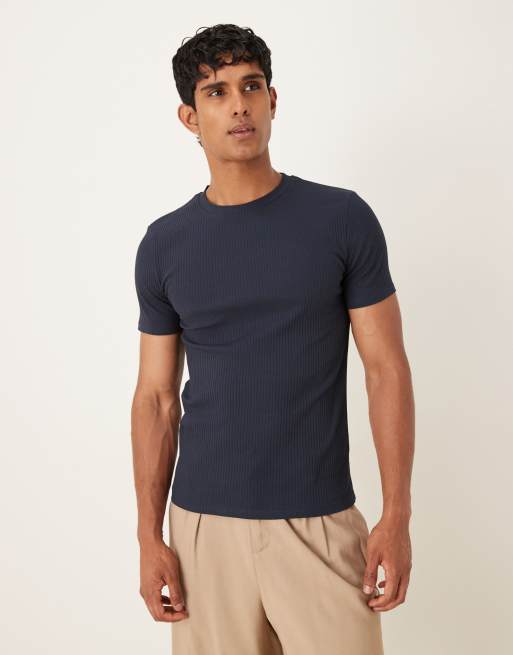 ASOS DESIGN - T-shirt moulant en tissu côtelé ultra épais - Bleu marine